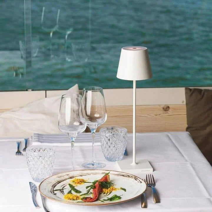 This modern rechargeable table lamp offers cable‑free placement, simple touch control with three brightness levels, and up to 20 hours of light per charge. Its soft, energy‑saving LED glow suits home interiors and outdoor settings, providing comfortable illumination for bedside use, living areas, and terraces.
